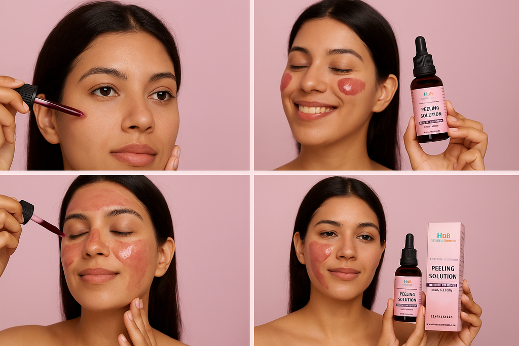 • 20% AHA (Glycolic Acid, Lactic Acid, Mandelic Acid) – Exfoliates surface, smooths texture, fades spots.
