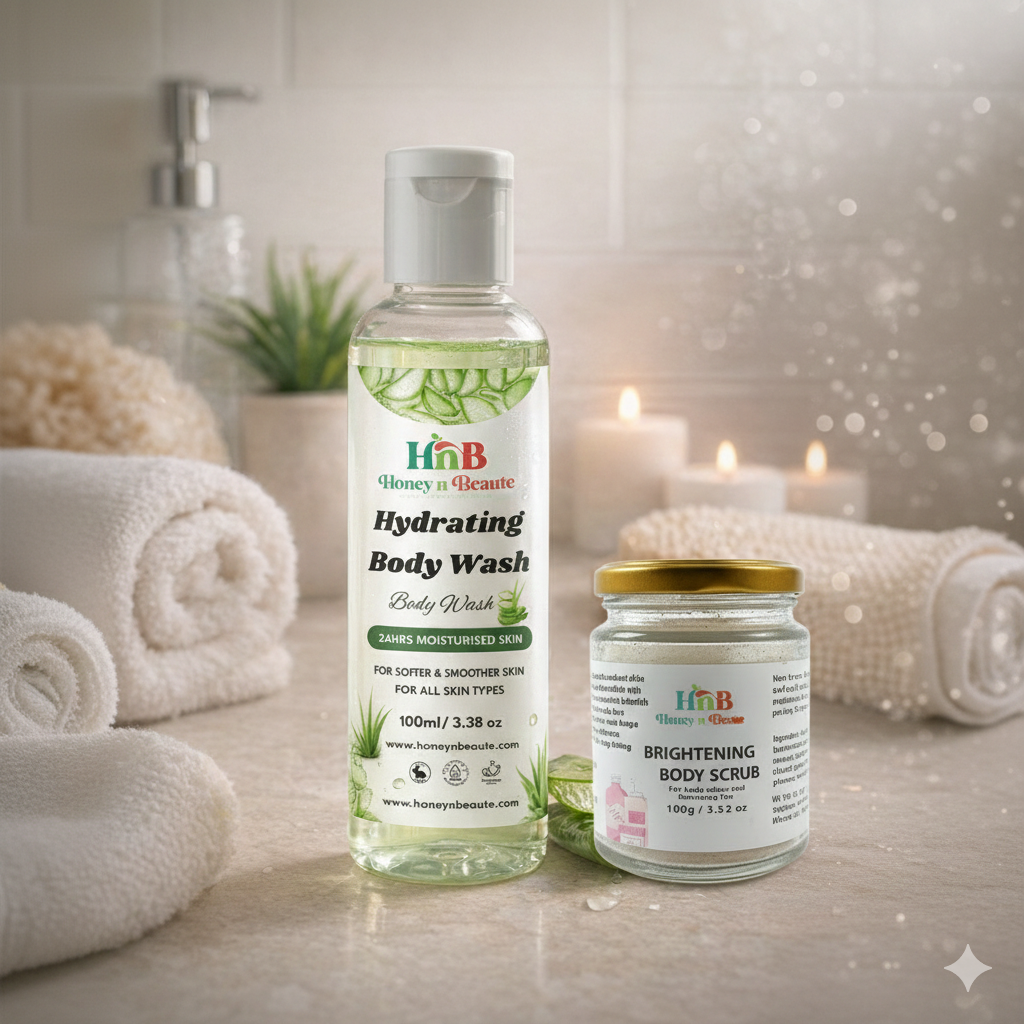 Reveal your skin’s natural glow with the Honey n Beaute Body Care Combo — a dual action of exfoliation and hydration. This combo gently buffs away dull, dead skin cells while nourishing your skin with lasting moisture. Perfect for daily use, this clean and vegan formulation is suitable for all skin types.